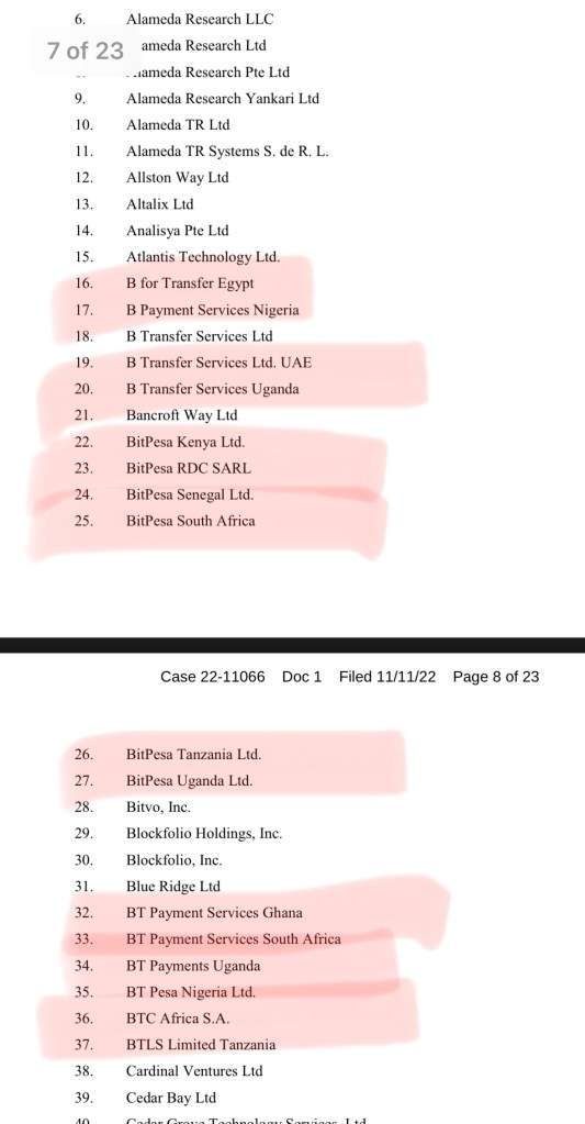 - African FTX subsidiaries encompassed by U.S. Chapter 11 filing
